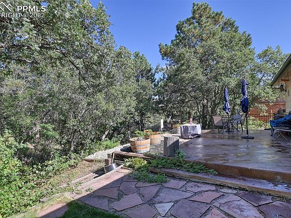 Welcome to this incredible house in the Golden Hills neighborhood of Rockrimmon. If you've been looking for a spacious home on a tree plentiful lot with gorgeous views of Pikes Peak then this home will check all your boxes. Featuring two master bedrooms, one on the main floor and one in the basement, this home offers a great opportunity for a mother in law suite or main level living if desired (laundry on main level). Master on the main includes connected full bath. Master in the basement boasts even larger bedroom with incredible master bath featuring dual shower heads. Large kitchen with beautiful cabinets, gas range, tile floor, and adjoining dining area make a wonderful place to entertain or spend time cooking with loved ones. The living room on both floors provide ample space for comfortable seating and both include wood fireplaces with brick mantles. In the basement you'll find an office space with a connecting bathroom perfect for working from home, or potentially a fifth non conforming bedroom if needed. The basement also features an additional room perfect for crafts, gaming, or other hobbies without using up bedroom space and large room with copious amount of storage space and built in storage cabinets. The front yard and living room window provide wonderful views to the west with no neighbor living directly across from the home. The backyard has a quintessential feel of living in the mountains with open space and mature trees, a poured concrete deck provides great space for outdoor cooking, gardening, entertaining, and you'll be sure to love observing the wildlife visits throughout the year. Over 3500 sq ft. in district 20 this is a home that you won't want to miss as they do not come to market very often.