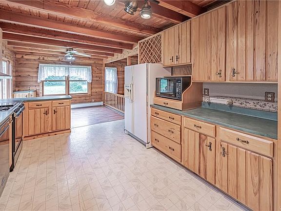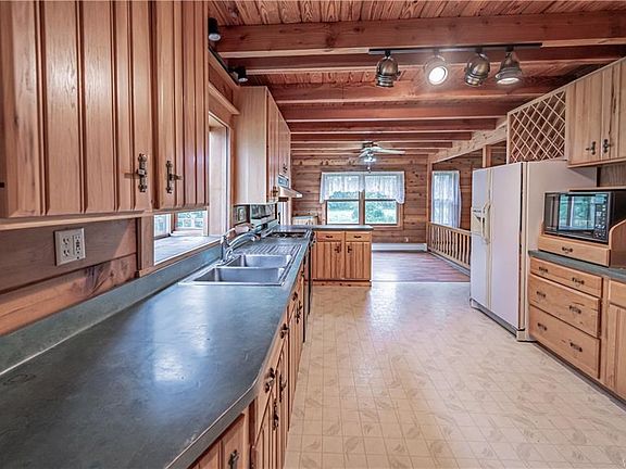 Rustic log home privately situated on three wooded acres in Appleton. Generous sized kitchen with all appliances & plenty of cupboards. LR/DR combo with sliders to tiered rear deck. LR opens to large loft above and covered front porch. First floor bedroom & shared full bath. Floor #2 is an open loft, however, could easily convert to two bedrooms. Basement with full bath, laundry, utilities and bulkhead doors for easy access/egress. Large 60'x 60' Morton pole barn offers plenty of storage and possible uses. Property sold in its present condition as is. Seller will make no repairs. Sign in place...drive by today! 2021-08-13