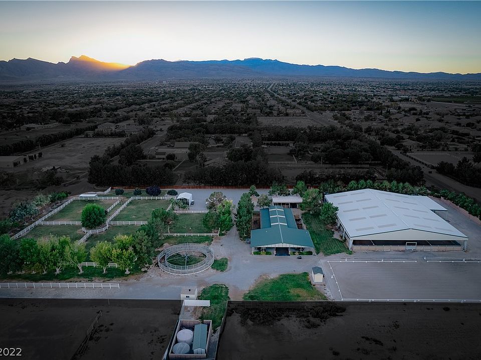 Enter your private gates to this impeccably maintained 4.75 acre Equestrian Farm. No expense spared 12 horse barn with turn-outs, A/C, concrete aisle with premium non-slip coating, 4 wash racks, 2 inside and 2 outside, grain room, tack room, office, bathroom, laundry. Covered mare motel accommodates 4. Ride anytime day or night in the huge 150' X 125' lit, COVERED ARENA and cooled by a Big Ass Fan. 2nd outdoor arena with judges quarters, hot walker, covered hay storage. 5 fenced irrigated pastures. Entire property is serviced by a 675' private well. Up to 12 acre feet of water rights are available for purchase.