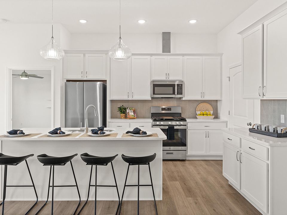 Gas fireplaceHigh end quartz countertopsModern finishesOversized walk-in closetSpacious primary suiteOversize walk-in pantryLarge kitchen island