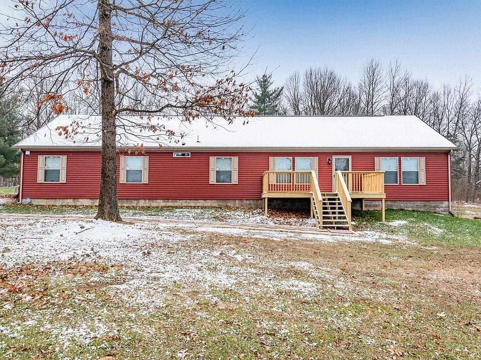 Welcome home to affordable luxury. Built in 2018, this 4 bedroom 3 full bath ranch home, situated on 5 acres, is a wonderful opportunity for a family with room to grow. Large eat-in Kitchen featuring stainless steel appliances, custom cabinetry and a large island with plenty of seating. The Main bedroom offers a large walk-in closet, soaking tub, double vanity and separate shower. The five acres of land offer ample room for the addition of a large garage and barn. Conveniently located off May road, head south on Rockport, over I-69 and then turn right on May road, home will be on your left.