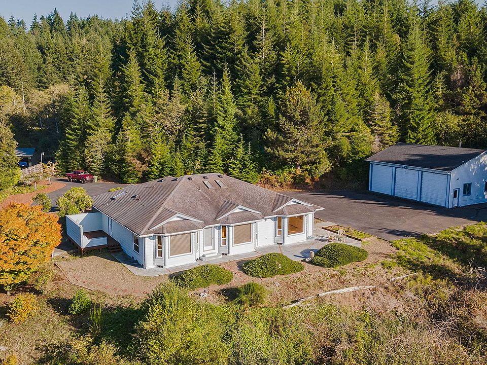 Welcome to your dream home in the beautiful Glasgow area! This custom 3-bedroom, 2-bath bayview residence is situated on a sprawling 1.69-acre lot.The open-concept, vaulted ceiling design of this 2,068 sqft home allows for seamless flow and an abundance of natural light throughout. The spacious living room is the ideal spot for relaxation, featuring large windows that provide stunning views of the bay and bridge.This home features a large kitchen, equipped with a double oven, ample counter space, that's perfect for meal preparation and casual dining. Whether you're hosting a dinner party or enjoying a quiet family meal, this kitchen is a culinary enthusiast's dream.The primary bedroom is a true sanctuary, complete with an ensuite bathroom that boasts a full walk-in shower, dual vanities, and a generous walk-in closet and exterior door to a private deck perfect for a hot tub. It's a great retreat after a long day, offering privacy and comfort.Two additional bedrooms provide ample space for family, guests, or can be transformed into a home office or personal gym, allowing for flexibility and customization to suit your needs.The outdoor space is a true gem, with 1.69 acres of land to call your own. Ample parking pad features a large 3-bay shop, with RV sized doors perfect for storing all your tools and toys, and it even includes a full bathroom for added convenience. There is also a seperate single bay garage for additional storage!The Glasgow area is known for its scenic beauty and serene surroundings, offering a peaceful escape from town but just minutes away! Close to dunes and fishing this is an opportunity you don't want to miss! PRICED BELOW RECENT APPRAISAL! SEE VIRTUAL TOUR VIDEO.