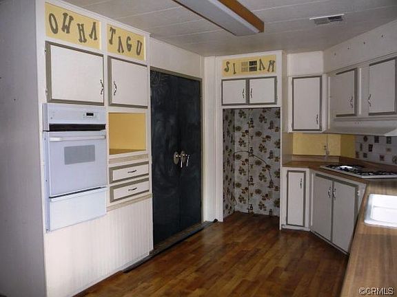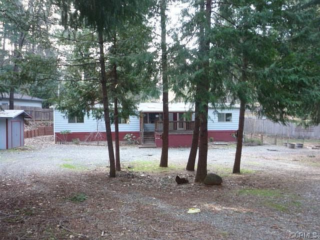 #1277 HUD HOME with a lot of potential! Three bedroom, two bath manufactured home with open floor plan. Lots of interesting details: Built in bunk beds, pantry has a clever chalk board front, laundry room has custom cabinet. Pop out has very nice office area with built-ins, laminate flooring in wide open living / dining area. Nice sized lot with circular driveway to pull through. Garden area, large covered front porch. Cozy woodstove, unique light fixtures and more.