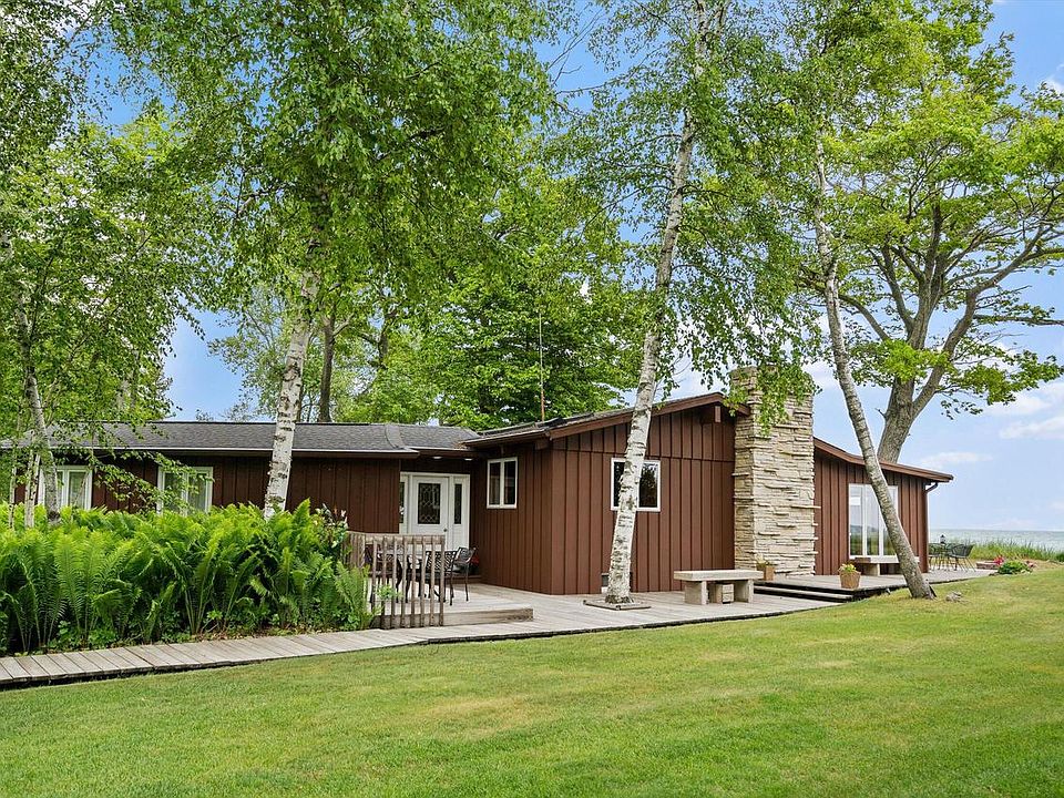 Fall in Love with this Lakeside Estate that features two homes and an additional lot. Privately located on the shores of Lake Michigan with 96 feet of beachfront. The inspiring architecturally designed homes offer the perfect blend of comfort, elegance, and breathtaking views. As you step inside the Ranch style home, you will be greeted by the warmth of Mississippi Cyprus Hardwood floors throughout the open floor plan seamlessly connects the living spaces. Natural light floods the interior, highlighting the attention to detail and craftsmanship. The Second home features 2 bedrooms 1 bathroom, 2 car attached garage, and a large deck with stunning lake views. Do not miss the opportunity to own this exquisite lakefront retreat.