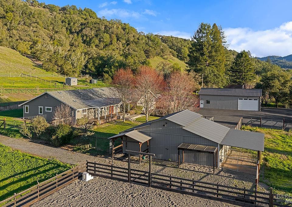 Nestled on nearly 4 pristine acres just outside Santa Rosa, this stunning property offers the best of Sonoma County living, where high-end craftsmanship meets open space and modern luxury blends with nature. The extensively remodeled main home features Sierra Pacific windows, engineered hardwood floors, custom woodwork, and Levolor blinds. The chef's kitchen includes granite countertops, a maple butcher block island sourced from Kentucky, Sub-Zero fridge, Wolf range, Viking dishwasher, and a huge walk-in pantry all centered around a dramatic Extraordinaire fireplace. Outside, you'll find: A newer shop ideal for guests, rental, or creative use. Immaculate breezeway barn with 4 stalls, tack room, wash rack, and storage loft. Fenced arenas and pastures. RV hookups with water, power, and septic. 3-car garage, fruit trees and wide-open skies complete the scene. Infrastructure includes a 4,000-gallon water tank with new pump house, 400-amp power, freshly paved driveway, and a $200K+ drainage system by Adobe Associates and a backup generator that powers everything in the house, shop, barn, and property! Whether you're an equestrian, hobbyist, or remote-working dreamer, this is a retreat with room to grow.