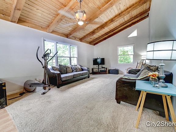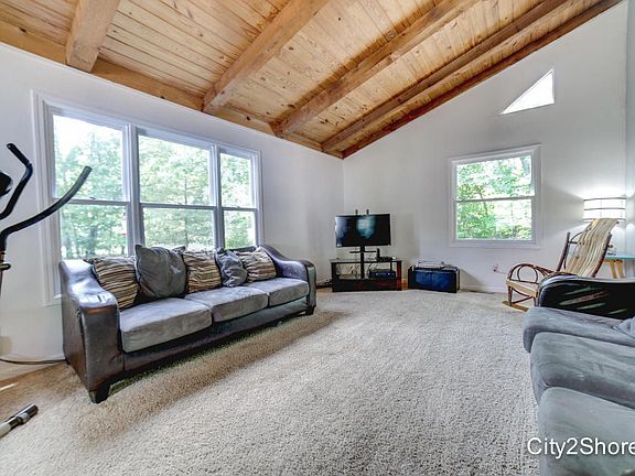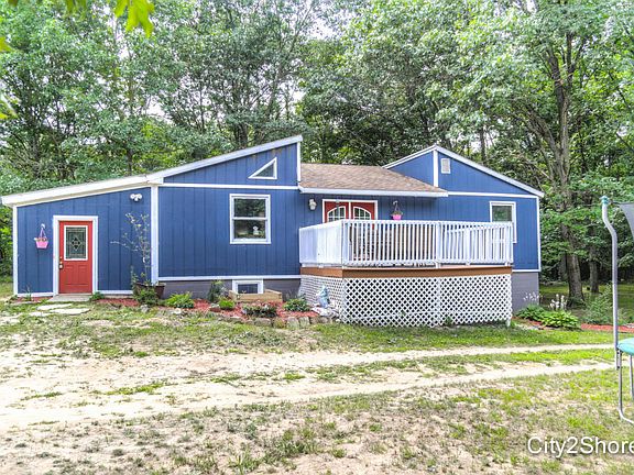 A beautiful wooded lot that backs up to state land with a wonderful view of Fish Lake during the cold winter months. Set back off the road, the home is private without feeling too isolated. With an open floor plan, the main level has a living space with large vaulted ceilings, an open floor plan kitchen and dining area. The main level includes 2 bedrooms located just off the kitchen with a full bathroom nestled in between. The walkout basement features 3 bedrooms with egress windows, a storage room and a second full bathroom. The laundry is located in the basement just off the master bedroom. The master bedroom does include a walk-in closet. This home offers plenty of room upstairs of entertaining, with the option to leave the bedrooms downstairs. The exterior of the home includes a 30'x40' pole barn with a secondary door for a garage.