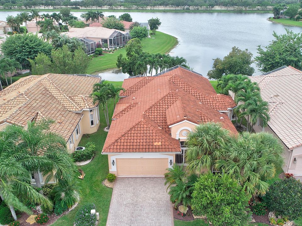 Beautiful sought-after Alexander model with 2 bedrooms plus den/convertible bedroom, 2 baths and gorgeous lake views. Upgrades include: A/C 2 years old, screened in front entry, decorative etched glass front doors, newer washer/dryer, crown and base molding, wainscoting, neutral tile on the diagonal, cabinets in laundry room, extended and screened in Lanai, generator with separate electric panel and accordion shutters. The spacious kitchen has beautiful medium toned wood cabinetry, black granite, black appliances, tiled backsplash, snack bar, breakfast area and large bay window. The master suite consists of neutral carpet, tray ceilings, fan and 2 large walk-in closets. The master bath has chandelier, wood framed mirrors, soaking tub, separate shower, dual sinks, (MORE)