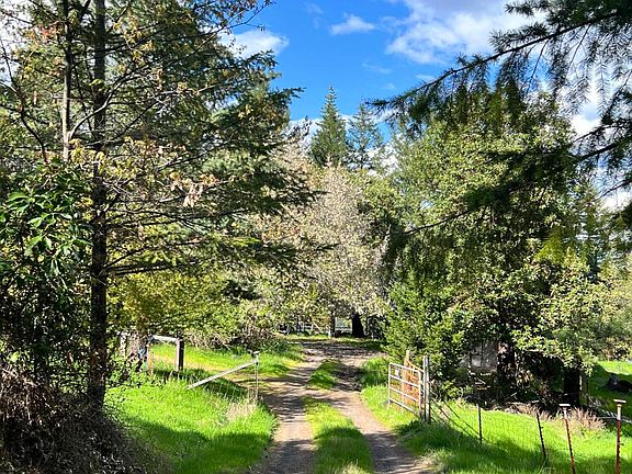 Secluded and peaceful, yet close to town. This hidden gem perched on top of a small hill with its own private driveway in a 5.29-acre partly wooded parcel with beautiful meadows and lovely mountain views, plus a large barn approx. 1044 sq.ft near the main house, a 3-bedroom and 1.5 bath modified manufactured home, plus a bonus room. 2 detached carports. Circular driveway design in front of the house for easy in-and-out access. There are several fruit trees and areas great for gardening on the property. Well has an average13.8 GPM flow rate, test was done recently. Owner-carry possible.