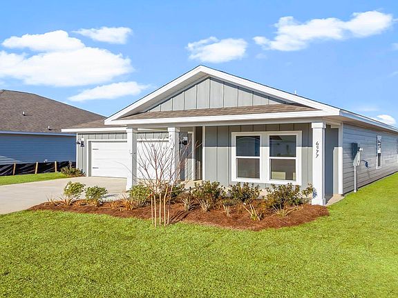New construction home located in Phase IV of Liberty. This home is under construction and is located at 6577 Weems Way. The Riverside floorplan features 5 bedrooms, 3 full bathrooms and a two-car garage. As you enter this home through the covered front entry, you will find two bedrooms located just off the foyer and a shared bathroom. Beautiful EVP flooring is throughout the main and wet areas of this home with carpet in bedroom. From the foyer you will enter the open and spacious kitchen and living area and find that the kitchen is adorned with elegant quartz countertops, beautiful white cabinetry and is equipped with a stainless-steel appliance package, including a smooth top stove, microwave and dishwasher. There are two additional bedrooms just off the dining area that share a hall bath. The primary bedroom is situated at the back of the home and has nice sized bathroom with separate shower and large soak tub as well as a large closet. Enjoy evenings from your covered back porch or sit with your morning coffee as you greet the day. This home is a short walk to the Liberty amenity center and central mail kiosk. The 7,500 square foot amenity center, complete with a large pool, a splash pad, a playground, and a fitness center inside. The amenity center is where you'll see monthly community events, including Back-to-School Bashes, Halloween costume contests, Valentine's dates for the adults, and more. Liberty is a great choice for military personnel working at Tyndall Air Force base as it is only about a 15-minute drive away. Liberty is located off Highway 231 and Star Avenue making it a short drive to shopping, food, schools, and the beautiful beaches of Panama City Beach.