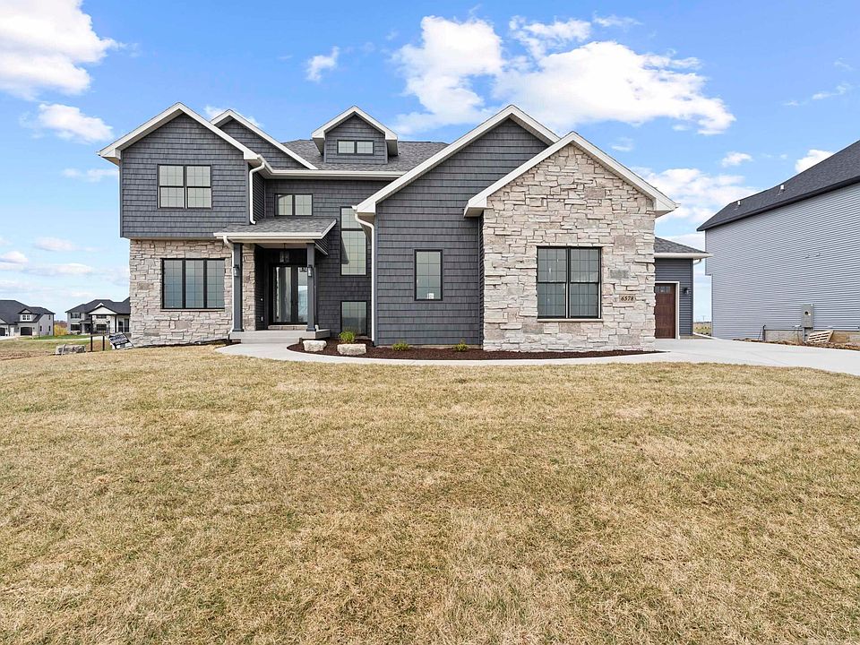 This 5-bedroom, 5-bath new construction in Bettendorf offers over 4,300 finished sq ft of thoughtfully designed living space. The open-concept layout features a chef’s kitchen with quartz countertops and a walk-in pantry, a spacious great room with a custom fireplace and built-ins, and a main-level office or flex space, perfect for working from home or playtime. The finished basement provides a full bathroom, large rec area, and potential guest suite. Upstairs, the primary suite is a true retreat with dual vanities, walk-in shower, and a HUGE walk-in closet. Enjoy outdoor living on the covered patio with a flat backyard, ready for grilling, gardening, or gathering. Located in the top-rated Pleasant Valley school district and just minutes from parks, shopping, and dining—this home checks all the boxes for modern living!