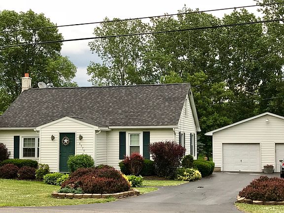 Beautiful country home, well maintained (2 bedroom/1 bathroom/attic/basement). Also enjoy a screened in deck, tons of storage with 2 garages, landscaping around the house/garages, and a fireplace in the living room. Updates since 2008 include all new windows in the house/custom sliding glass door with screen to deck/metal roof on single-car garage/seamless gutters on house/pergo floor in dining room/washer-dryer hookup on main floor/bath-fitter tub/public water installed 2015.