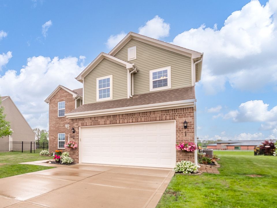 Don't miss your chance to own this 4-bedroom family home in Pendleton's highly sought after neighborhood of MAPLE TRAILS. Building a new home will take 6 months, this one awaits you now! And let's talk about upgrades...exterior brick, covered front porch with craftsman style columns, premium lot on the pond (and gorgeous landscaping), extended concrete patio, wroght iron spindals at stairway, stagged cabinets in kitchen with crown mold, kitchen island, backsplash, premium appliances, ceiling fans, recessed lighting, 9 ft ceilings, luxury vinyl plank floor throughout main level. Here you find modern ammenities meet functionality. The main-level office has doors for privacy for those who work from home, as well as main level laundry room for convenience and efficiency. Upstairs, a spacious loft offers flexible space ideal for a media room or play area. This home is the perfect blend of comfort, quality, and elevated design-ready to welcome you and give you piece of mind with it's transferrable structural warranty. The location is GREAT as it's just 14 miles from Hamilton Town Center. *** Some photos are virtually staged ***