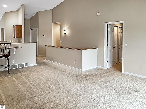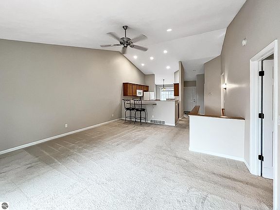 This beautiful condo offers a unique combination of convenience and countryside views. The three-bedroom, three-bathroom (low threshold shower/grab bars) home has an open-concept living area with a gas fireplace, perfect for Northern Michigan's cool spring nights. With its ample storage space, main floor washer and dryer, heated attached garage (complete with handicap ramp), Generac, and humidifier, this space will surely provide you with all the extra comforts of home. The back deck and walkout basement provide the perfect place to relax and enjoy the changing seasons and stunning wildlife views. The lower level is complete with plush carpeting, a bathroom, a bedroom, and a living area, not to mention the picturesque French doors that walk out to a patio and large meadow area, where you can enjoy watching the rabbits and deer graze.