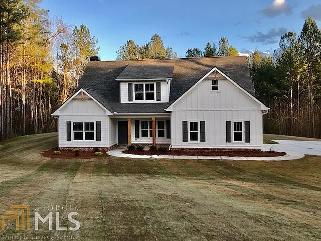 6.5+/- ACRE POND LOT AND MASTER ON THE MAIN... The beautiful Smithfield Plan features foyer entry leading to Dining Room with craftsman trim work, family room w/vaulted ceiling, open kitchen boasting solid surface counters, designer tile back splash, abundant cabinet storage, and eat-in area overlooking backyard. Wood flooring throughout much of the common living areas. On the main level, you'll find luxurious master suite with tiled shower, soaking tub, double vanity w/solid surface counters, and walk-in closet. A guest bedroom and full bath is also found on main level. Upstairs, you'll find two guest bedrooms, full bath, and multi-purpose room. Foam insulation in attic! We've included a nice covered patio for your enjoyment!