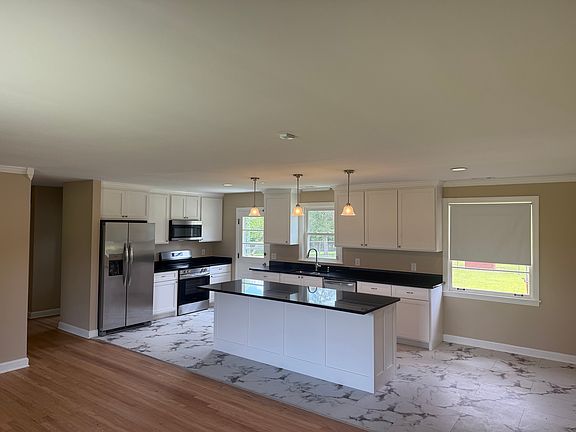This House has been totally refurbished; with new; Appliances, sanded hardwood floors, paint, granite counter tops, cabinets, etc. Sits on a 1 acre lot with other acres available for possible hunting rights. Attached large 2 car garage with 1 detached storage/garage. Also 2 acre field included behind main residence. Houses on this street are not close together. nearest house to the east is 1/2 mile. complete tree line surrounding property on 3 sides. 5 miles from downtown. 6 Month minimum. Grass cutting included. Fenced in area for large pet. No smoking in house. NO pets in the house.