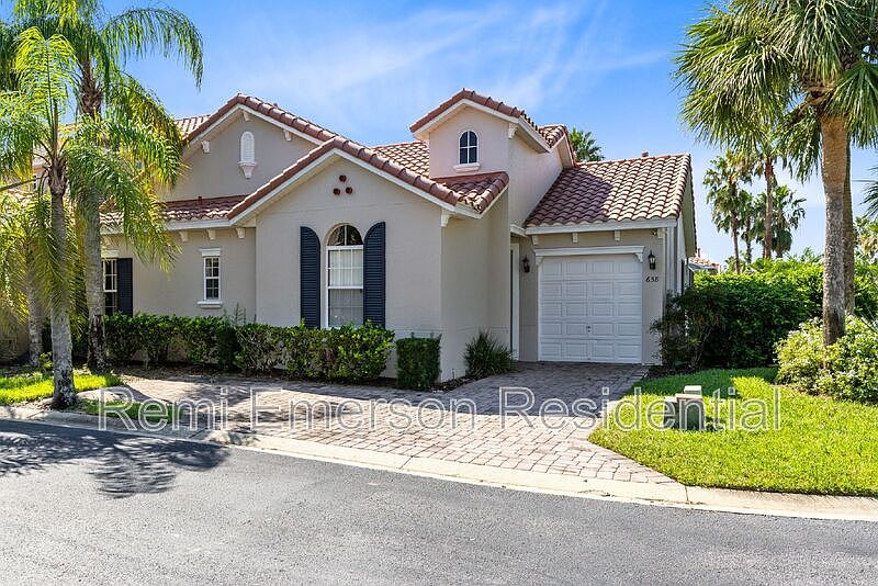 This Mediterranean style, one story townhome featuring a stunning full size private pool, covered lanai with screened in pool deck and 1-car attached garage with brick paver driveway and 2 parking spaces! Located in a gated community this lovely townhome offers a lifestyle with comfort and privacy, an open floor plan, breakfast bar and ceramic tile flooring. A kitchen with a breakfast bar opens up into a spacious and bright dining room and a family room; all main living spaces are tiled and filled with the plenty of natural light. The primary suite offers lots of space, it has a walk-in closet; private bath with 2 sinks, walk-in shower and separate toilet. The side yard is fenced making it a perfect spot for pets to run around. Community includes a clubhouse w/kitchen, playground, tennis and volleyball courts. Tenant to pay $100 monthly for professional pool service to maintain pool.**All Remi Emerson Residential tenants are enrolled in the Resident Benefits Package (RBP) for an additional $50 a month which includes $100,000 liability insurance, HVAC air filter delivery, credit building to help boost the resident's credit score with timely rent payments, up to $1M Identity Theft Protection, move-in concierge service making utility connection and home service setup a breeze during your move-in, our best-in-class resident rewards program, on-demand pest control, and much more Pet Details: No dogs on aggressive breed list. Pet Deposit $500 non refundable plus $30 a month additional rent. Dogs under 40lbs. Renters Liability Coverage required for dogs.