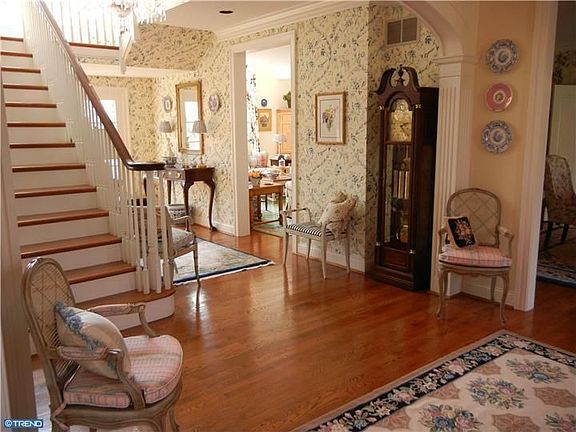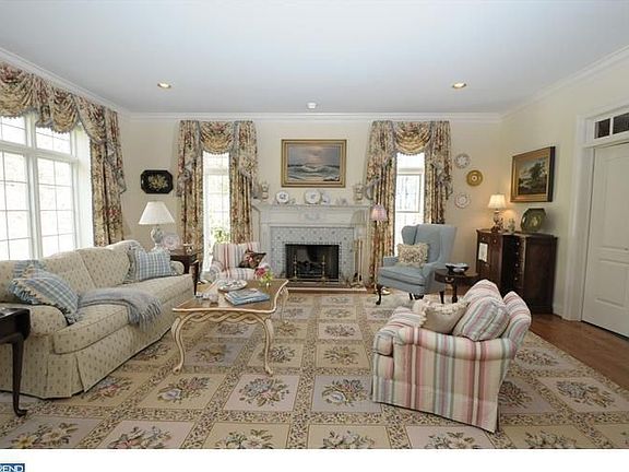 Located in natural setting, beautiful 3400 sq ft contemporary sits on 1.2 ac lot in Spring Meadows community of custom homes, open space & pond. Large flat yard perfect for play & events. Dramatic 2-story foyer flanked by elegant din. rm & living rm w/brick fireplace. Light & airy home office w/skylight & vaulted ceiling. Easy entertaining in large fam rm w/wet bar, stone fireplace, beamed ceiling & doors to expansive deck. Adjacent kitchen has lots of cabinets, double oven, new cook-top & doors to deck. Powder rm & laundry rm on 1st floor. Relax in marvelous spacious master suite w/fireplace, vaulted ceiling, skylight, walk-in, whirlpool, db sinks & shower. 3 other bedrms have ceiling fans, ample closets & organizers. Hall bath w/skylt. Walk out basement & deck. Lots windows for natural light & hardwood floors throughout. Newer HVAC, suppl propane heaters, hot water heater, roof & garage door. In Birmingham Township & award-winning Unionville-CF schools. Close to KoP, Phila & Wilmgton. Priced to sell!