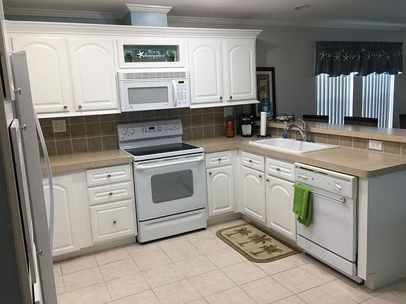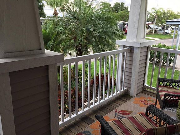 Exceptional, barely lived-in, turnkey, 2005 Palm Harbor home, with brand new furnishings (2016) and new flooring throughout (2016). The roof is a new "roof-over" (aluminum insulated over the original shingle roof) and it comes with a transferable lifetime warranty!!!! Some of the rooms have tray ceilings that make them seem even more spacious. It has a double garage with built in storage and adorable front and back decks! The yard has Rain Bird Sprinklers for irrigation to keep it looking lush and green. There's nothing "mobile" about this home! Conveniently located just across the street from the swimming pool and Manatee Hall. This is a 2 bedroom/2 bath home with an office that could be used as a 3rd bedroom. The tasteful interior décor and furnishings created a warm, inviting atmosphere for daily living, with ambiance and plenty of room for entertaining. Don't miss this beautiful home priced under $100,000, with a garage and 1,800 feet of living space, built by Palm Harbor, the best in the business! Monthly lot rent is just $810.
