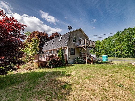 Cozy Gambrel with Cathedral Ceilings, Stone Fireplace & Versatile Bonus Space. Welcome to a home that's as functional as it is charming. This beautifully maintained Dutch Colonial/Gambrel-style home offers the perfect balance of timeless character and flexibility for modern living. Step inside to wood and tile flooring throughout, vaulted cathedral ceilings, and a stunning stone fireplace that anchors the open living space—ideal for cozy evenings or casual gatherings. The main-level bedroom provides convenience and flexibility, while the spacious second-floor loft bedroom includes its own bath and private balcony, offering a peaceful retreat with elevated views. The oversized two-car garage offers ample storage above, plus a finished bonus room at the back—perfect for a home office, workshop, or creative studio. Outside, enjoy a large deck for entertaining, relaxing, or simply enjoying the quiet surroundings. Whether you're working from home, downsizing with style, or seeking a unique space to make your own, this home offers endless possibilities. There are many financing options available for this home, including 100% financing with no down payment available for qualified buyers.