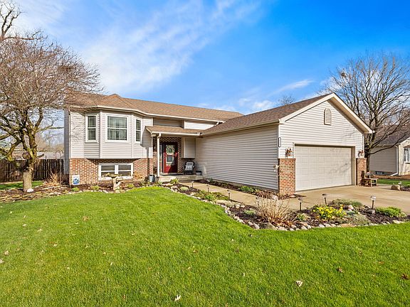 A GREAT HOME WITH LOTS OF SPACE! 2339 Sq. Ft. of living space with a huge 14x26 shed with electric and a loft! This home has been very well maintained. 4 spacious bedrooms with a tray ceiling in the main bedroom along with a walk in closet. Nice updated country kitchen with a pantry and granite counter tops. You can sit by the wood fireplace with gas start, in this cozy, rustic rec room downstairs to unwind after a long day. The laundry room has lots of room for storage. Attached 2.5 car garage. Enjoy the outdoors in this large backyard with a wooden privacy fence. Hot tub stays! Front door 2011. Double Range 2012. Alslide Triple pane windows/sliding patio door were installed in 2013 in the entire house, (Lifetime warranty). Furnace/AC were installed in 2013. Roof 2014. Gazebo 2016. Dishwasher and Microwave 2018. Leaf Guards 2021. Lowe level carpet 2022. Washer/Dryer 2023. New, granite counter tops in the kitchen. Sump Pump and back-up 2024.Make this your new home!