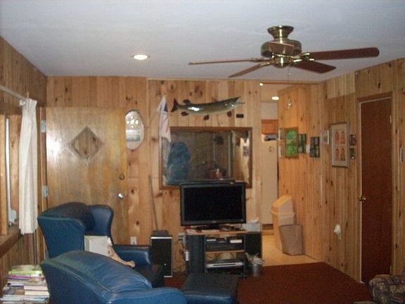 Very nice 3 season log sided cottage w/ ex. sandy beach for the kids. Locatd on beautiful Chateaugay lake. Knotty pine wall in living room. Extensive oak kitchen w/ counter tops. Vermont Casing woodstove. Bath all new. lg. storage shed, lg gazebo at beach front. Screened w/ concrete floor, covered porch, lg. sundeck, screened porch, docks for boat, lg. pines. Outstanding view of lake & mountains. Sit in gazebo & look down the whole lake. Totally furnished.
