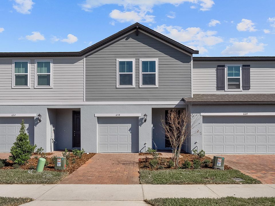 This brand new 3 bed 2.5 bath townhome is located within walking distance of Reunion Village and just a little bit further to downtown Champions Gate where you will find an abundance of shops and restaurants. The townhome comes with a 1 car garage with an automatic door opener and a yard at the rear that overlooks the wooded area. As you enter you will love the open floor plan. The kitchen has a walk in pantry, 42 inch white shaker cabinets, granite counter tops and stainless steel appliances. There is a large island which can easily accommodate some bar stools to enjoy your meals. The half bathroom is located downstairs. There is no carpet on the 1st floor of this unit. On the 2nd floor you will find a good sized loft area which could be used as a place to work on have a small office. 2 of the bedrooms share the hall bathroom which has a tub with overhead shower, single vanity and granite counter tops. The master bedroom is very spacious with plenty of natural light and an extra large walk in closet. The master bathroom has a walk in shower with glass stall, his and her sinks. The community has a children's playground and is just a short distance from exit 58 on the I4. No Smoking, $65 per person application fee, Landscaping included in the rent.