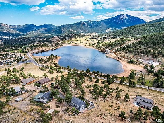 Perched on over three acres of private, scenic terrain just minutes from the heart of Estes Park, this remarkable property offers a front-row seat to the dramatic peaks of the Rockies and the serene waters of Mary’s Lake. The main residence, a four-bedroom home filled with character and light, is designed to embrace its surroundings at every turn. Expansive decks cascade along the view side of the home, creating layered outdoor living spaces perfect for taking in the valley’s ever-changing colors and the sparkle of the lake below. The main level features a generous primary suite with an attached office or den, offering private deck access and sweeping vistas. Rich wood accents, exposed beams, and an inviting wood-burning stove lend warmth and authenticity to the living spaces, while a sunroom with skylights invites moments of quiet reflection. Upstairs, three additional bedrooms are complemented by a loft and a spacious storage room, ensuring both comfort and practicality. A second building elevates the property’s versatility, housing two fully equipped ADU guest quarters above an RV garage. One suite features a bedroom, kitchen, fireplace, and deck overlooking the lake; the second is a charming studio with a private deck, full kitchen, and bath—ideal for extended stays or creative pursuits. For those drawn to a more agrarian rhythm, two separately fenced pastures with sheds welcome goats, llamas, or other animals, while a gardening shed stands ready beside flourishing garden spaces. A dedicated RV pad, indoor RV garage, workshop, and recreation room provide abundant storage and functional possibilities. Lovingly maintained over nearly five decades, this property now awaits a fresh vision—inviting its next chapter to be written in a setting where mountains meet lake and every horizon feels like home.