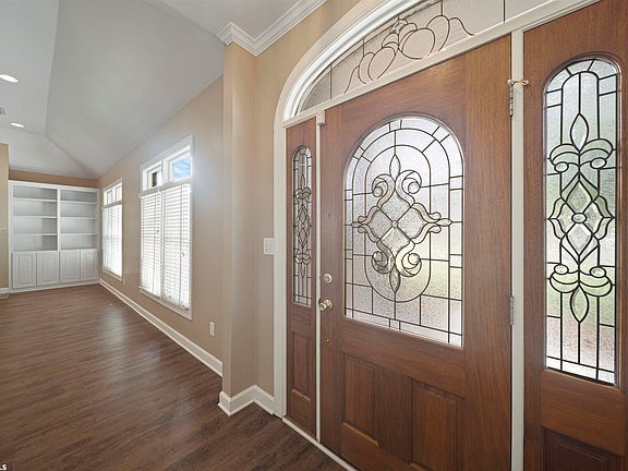 This custom-built home is in the heart of Gulf Shores. Beautiful inside and out, when you walk in you are greeted with an open concept kitchen, dining and living rooms. The split-level floor plan highlights the expansive kitchen with its wet bar, numerous cabinets, and view of the backyard. You’ll love the openness of the living area with the high ceilings, crown molding, built-in shelves, and gas fireplace. This home is perfect for entertaining or just enjoying family time. French doors in the dining area lead to a screened porch adjoining an extra-large fenced yard with mature landscaping. The primary suite features double vanities and his and hers walk-in closets. The 2.5-car garage has a workbench and shelves. This 3-bedroom 2.5 bath house is full of extras: laundry room with sink and storage, new refrigerator and dishwasher, considerable storage with a decked attic above the whole house, double wide driveway great for boat or RV parking, new fortified metal roof, and storm-rated windows. No HOA. Close to beaches, golf course, grocery stores, parks, trails, and top-rated Gulf Shores schools.