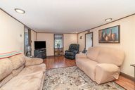 Pool houseFenced in-ground poolCustom cabinetryCovered pavilionSurrounded by cornfieldsHardwood floorsExposed stone wall