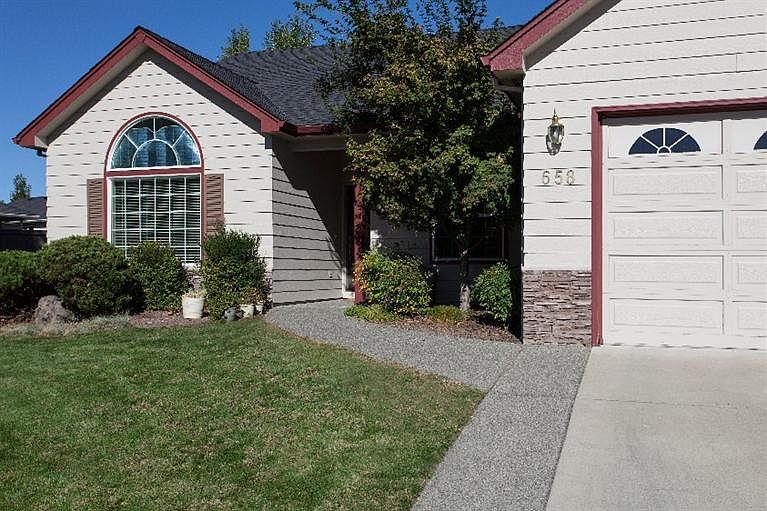 Nicely maintained - well built single level 1,652 sqft, 3 bedroom, 2 full bath home on a large .25 acre lot in one of the best locations in Central Point East. This is a great home with a wonderful light & bright floor plan that has good flow throughout. Separate, yet open, family & living rooms, dining nook & vaulted dining room area, breakfast bar, covered patio access, vaulted and 9' plus ceilings, skylights, gas log fireplace, hardwood kitchen cabinets, & plenty of storage space. Nice master suite with large walk-in closet, private patio access, spacious master bath with low profile easy entry shower, separate soaking tub, & double vanity. Amazing 3 car garage with 10' ceilings, room to develop RV parking area, large - private fenced back yard with plenty of room for a pool. This is a great opportunity in a fantastic location.
