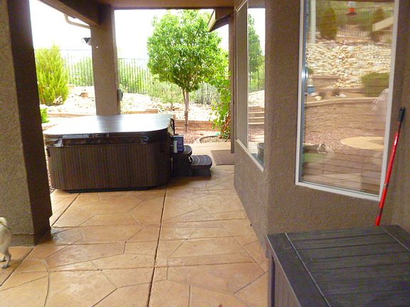 - Exterior Features: Fence - Backyard, Landscaping-Front, Patio - Covered, Storm Gutters, Landscaping-Rear, Porch - Covered, Spa/Hot Tub, Driveway-Concrete, Sprinkler/Drip, Deck - Covered, Drought Tolerant Spc