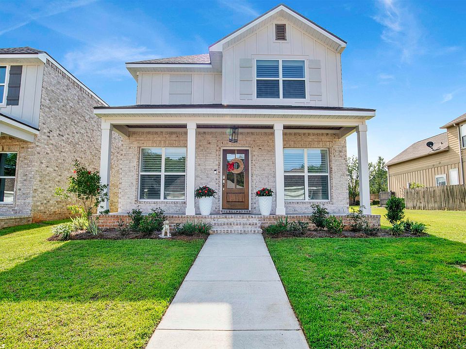 Charming new brick home on a double lot with gorgeous upgrades! Fabulous floor plan... open living room, dining and kitchen. Spacious primary bedroom with gorgeous stand alone tub, double vanity, separate shower, water closet and walk in closet. The second and third bedrooms are very spacious and each has its own private bathroom and walk in closets. There is a great lounging area upstairs with a study nook. Bright and airy, with tons of natural light. The kitchen is crisp and fresh with its painted white cabinets, light granite countertops, and large island. Hand selected lighting and plantation shutters really give the home a soft sophistication. The home also has a large laundry room, powder room with fun modern wallpaper, and nice pantry. It is Gold Fortified, has a termite bond, and the builder's warranty conveys to the new owner. Great location, close to schools, soccer field, hospital, shopping and downtown Fairhope. Double garage with alley entry.