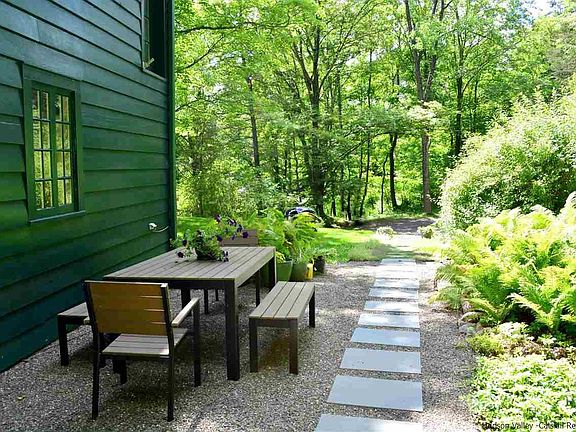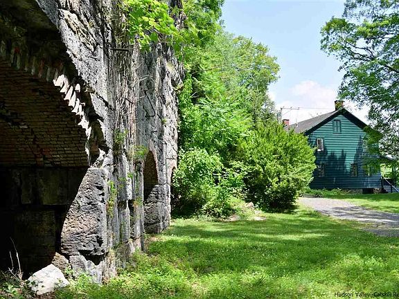 Catch the cool breeze from the famous Rosendale caves in this one of a kind, 1800's home with seasonal Rondout Creek views. Modern touches offer upgraded living while still preserving the historic feel. Enter into the eat-in kitchen that features stainless steel cabinets, a gas range and an abundance of counter space. The open floor plan includes living and dining room beautifully illuminated with natural light by the wall of windows along with hardwood floors and ample storage throughout. A sweet bedroom and spacious half bath with laundry rounds out the first level. Up the grand stairs you'll find a cozy sitting area surrounded by a walk-in closet, bedroom and full bath. The primary bedroom offers the ultimate in comfort and relaxation featuring a large en suite bathroom with a double sink, tiled shower and bright walk in closet. Picture your friends and family gathered around the outdoor firepit after going for a short hike to explore the caves behind the house. Located in historic and trendy Rosendale, this house is only minutes away from many popular restaurants, the Rosendale Trestle and Wallkill Valley Rail Trail, red-hot Kingston, Mohonk Preserve and a short drive to the NYS Thruway. Here is your chance to own a part of Rosendale's unique history - cement kilns and caves!