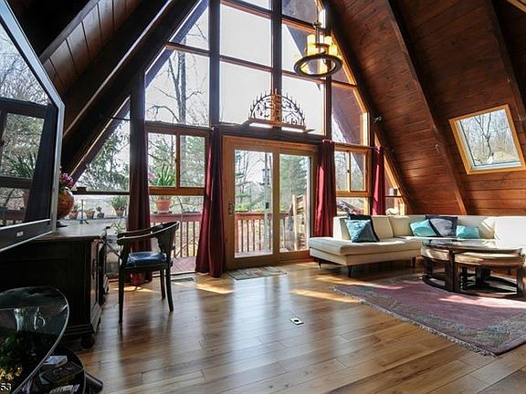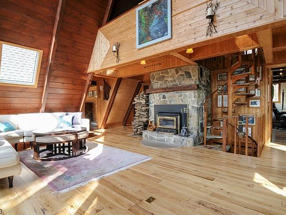 Vacation at home! Escape to a 4 BR, 2.5 Bath A-frame Alpine Chalet that offers privacy and tranquility in abundance! Nestled on 2.5 wooded acres. this home offers beautifully updated kitchen and baths, newer hardwood floors in Living Room, Breakfast Room and Bedrooms, 2 stone fireplaces, (both with hi efficiency inserts) newer doiuble pane Vellux windows, newer skylites, MBR suite with gorgeous views, separate dressing room and private bath with freestanding tub and stall shower. Heated floor in Main Bath, Spacious FR with newer wood laminate flooring, Updated electric and newer roof, 2 car garage with opener, outdoor fireplace, and a wrap-around deck. Large laundry room, even a laundry chute! and generator! Enjoy hiking and fishing in the nearby Columbia Trail and Ken Lockwood Gorge.