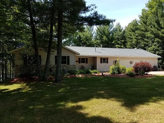 Out of the tension zone and in a secluded place where there is time to ponder is this custom built ranch home overlooking the Wolf River. Hop on your pontoon and spend hours cruising the waters of the Wolf River and Upper and Lower Post Lake and then return to your open concept home featuring a first floor laundry, master bedroom with private access to the riverfront deck, freestanding gas fireplace, and all oak trim. Spend more time relaxing on your inviting and secluded and covered extensive deck. The walk out basement features a family room, bonus room, craft room. The lower level patio features an 8-person Master Spa hot tub where you can entertain guests or quietly relax. The first floor full bath features a whirlpool bathtub. This is a maintenance free home with vinyl siding, a NEW roof in June of 2018 and an oversized double garage with hot and cold running water. NEW engineered viny flooring and carpet was installed in June 2018.
