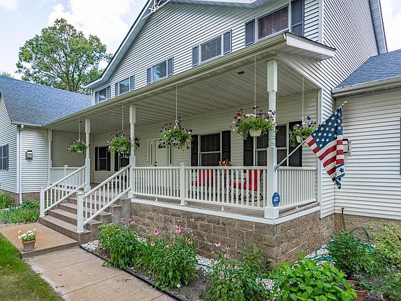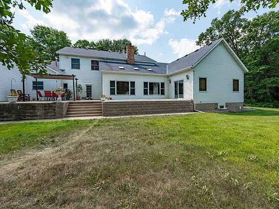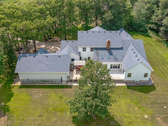 This private 40 acre home has so many extra features that gives this home so much space to live. Featuring 5 bedrooms and 4 bathrooms. Welcoming front porch with a beautiful tiled front entry. Crown molding and 9 foot ceilings make this an impressive entry way w/double closets. Formal living and dining room. Spacious family room with wood burning heatilator fireplace w french doors to the patio with pergola. Massive kitchen is complete w/ an abundance of cabinetry, pantry space , oversized center island and breakfast bar. Full-size double ovens, 2 cook top stoves, cast iron sink plus a smaller prep sink in the island and a gas fireplace to take the morning chill out of the air. There's room to host all of the holiday guests in the formal dining room! Main floor owner's suite wing with bathroom en suite, dual sinks, double closets, jacuzzi tub & separate shower. The upper level offers 4 large bedrooms with walk-in-closets and built-in desks and two large full bathrooms.