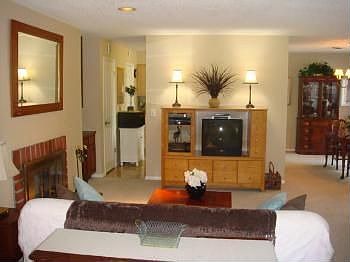 Over 1400 sqft of living space in this 3 bed 2 bath condo w/ a spacious ranch style layout & tons of closet & storage space. There are 3 doors that lead to the large covered deck with beautiful mountain views! A wood burning fireplace, 2 built in book/chi