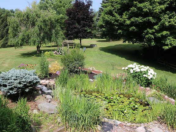 Park like setting on a paved road in Olivet schools! Walkout solid built 3br2b ranch offers hardwood floors throughout main areas and master bedroom, tile in entry way and baths, and updated vanities and showers. Large living room with sliders to deck overlooking backyard. Basement has lots of storage space along with a large family room. Plenty of room to section off and add two additional bedrooms if needed! Fenced in area off back of house, koi pond surrounded by perennials and a spacious side yard. Last but not least a 24x48 pole barn for storing the extra toys, workshop or whatever your heart desires. New shingles on roof 9/19! Don't delay, call for your showing today!