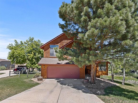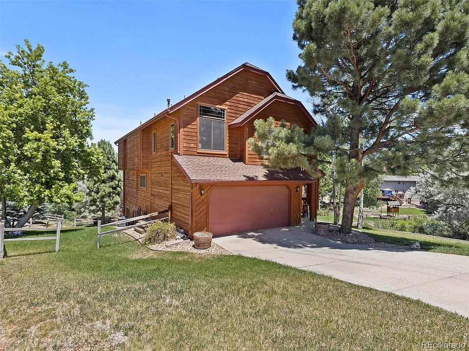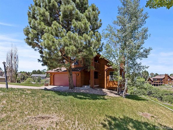One-of-a-kind home perched upon one of the most desirable locations in The Pinery. Don’t miss this rare opportunity to live a rustic Colorado lifestyle on almost half an acre situated on a sought-after cul-de-sac lot in The Pinery that backs to open space. The layout includes family room with a rock framed gas fireplace and window seats to enjoy a front row view of the sunrise. Cooking is easy in the oversized kitchen that walks out onto a new composite deck perfect for outdoor dining or just to enjoy the sunset. The high ceilings lead upstairs to the large master suite with its own private balcony. Ensuite bath with large tub, shower, and custom rough cut aspen vanity with unique Orthoceras fossil sinks. The second upper-level bedroom/office has been completely remodeled and has its own full 4-piece bathroom. Main level also includes a spare bedroom, remodeled 4-piece bath, laundry room and oversized walk-in pantry. New hand-scraped rough sawn cut hickory wood flooring throughout the main level and upstairs bedroom. Venture down to the finished basement featuring brand new laminate flooring that was just installed in June. Two sets of french doors lead out to another large deck surrounded by mature trees and plenty of room to add a hot tub. You’ll find a family room, wet bar, bedroom and 3-piece bath that stays comfortable year-round with the new mini-split installed in the living area and bedroom. Storage space in the utility room. Don't let this rare find pass you by!