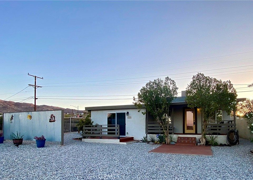 LOCATION, LOCATION, LOCATION! Beautifully remodeled DOWNTOWN home. Walking distance to all downtown amenities and short drive to casino and Joshua Tree National Park. Home was remodeled within the last two years with remodeling PERMIT from the city. Home is equipped with new roof, new septic, new plumbing, new electrical, new mini-split A/C and heaters, new water-proof luxury vinyl plank floors, new dual pane windows, new water heater, new interior mediterranean texture, new exterior stucco, and new evaporative cooler and ducting. Kitchen includes quartz countertop, custom tile backsplash, shaker cabinets, and new stainless steel appliances. Fully renovated bathroom includes tub/shower combo with custom tile, and exhaust fan. Living room includes double ceiling fans. USB outlets conveniently placed throughout the home. Beautifully landscaped with low maintenance, native plants and trees. Well lighted with dusk to dawn lights and solar lights throughout the exterior. Imported Talavera tiles accent address and porch steps. Convenient laundry room includes stacked washer /dryer. Spacious lot ideal for entertainment and RV access. Outstanding potential as a short term rental. Do not miss out on this beautiful home!