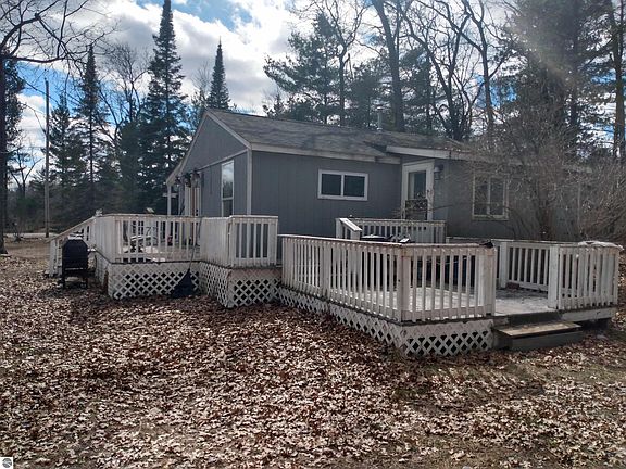 Tiny home living at its finest! Every inch of this 396 sq. ft. studio home with a wrap-around porch was carefully thought out, leaving no lack for storage. The large rooms include a 12x8 bathroom. Are you expecting family and don't have room in your tiny home? Do you need extra space for visiting family? There is the cutest 576 sq. ft. bunkhouse with two distinct studio living areas, each equipped with its own kitchenette and private bathroom, providing privacy and convenience. The large backyard is perfect for bonfires. A new septic system was installed in 2022. Close to Wickert Hills Golf Course, the AuSable River, riding trails, and the ever-so-famous Bear Store. This would make a great vacation spot or Airbnb investment property. Land contract terms are available.