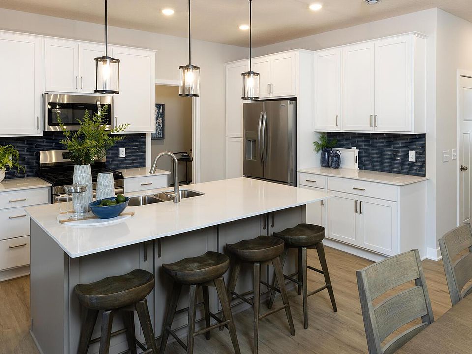 Our Bennett floorplan offers a spacious main level living design with an open kitchen that includes an oversized center island, staggered height cabinetry, and quartz countertops! There are 2 additional bedrooms, and a loft in upper level. The home comes with a Samsung® Stainless Steel Appliance Package featuring a counter-depth refrigerator. Luxury vinyl plank flooring in Foyer, Kitchen, Dinette and Great Room! Convenient main level laundry room and 9' ceilings on main level with Knock Down finish. The home comes with our Hayfield® Vinyl Window Package, Moen® Kitchen and bath faucets and a concrete patio, and an oversized 2-car garage!