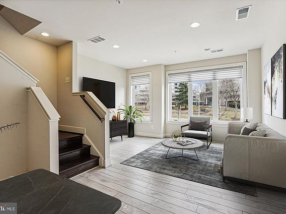 Discover the best-kept secret in Bethesda—Montgomery Row, an exquisite EYA contemporary community built in 2016. Ideally situated for commuters, shoppers, and culinary enthusiasts alike, this stunning home offers the perfect balance of luxury and convenience. This sundrenched outer row home offers an unmatched peaceful, open, and airy water view unobstructed by other townhomes for a tranquil oasis within an urban setting. Each of the 3 bedrooms includes its own en-suite bathroom to ensure privacy and comfort for everyone. The thoughtful design blends modern elegance and a coveted 2-car garage. One of the standout features for this home is the upper-level loft and top floor patio that affords access to take in the best nature view of any other townhome in the neighborhood: a pond framed by ever-changing foliage, including cherry blossoms in springtime. This is truly a 3-season retreat, equipped with a retractable sun awning for shade on summer days, an outdoor gas fireplace to keep you cozy on fall nights while sipping your coffee or wine, and a custom upgraded gas line for year-round grilling. This outdoor space is perfect for both relaxing and entertaining. With over $51K in upgrades, this home exemplifies attention to detail. Highlights include high-quality blinds, a central vacuum system, oak stairs, an upgraded appliance package, quartz countertops, upgraded tile and a frameless glass shower door. The owner's bedroom and bathroom boast high ceilings, a walk-in closet, and a beautiful owner's bathroom complete with a double vanity and stunning luxury shower. The main living level is light and bright to evoke Malibu beach house vibes. The open concept design allows ample kitchen work space that flows into a dining area and lounging and entertainment space. Montgomery Row is a vibrant community offering a wonderful play area, electric car chargers, and professional grounds maintenance and multiple parking options. You’re minutes from I-270, I-495, Old Georgetown Road, and Rockville Pike, not to mention an array of dining, shopping, and entertainment options, including Baldacci’s, Starbucks, Montgomery Mall, Pike and Rose, and more.