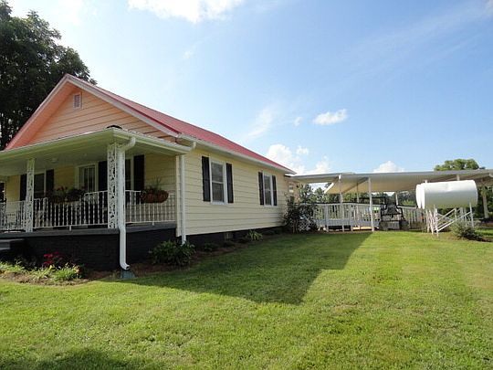 This charming 2 bedroom 1 bath farmhouse is situated on 12 fenced in acres. Home has just been freshly updated with all new paint throughout, new kitchen cabinets and appliances, all new flooring, gutters, and metal roof. House flows well with great layout. Eat in kitchen with small bar opens up to the living room. Two good sized bedrooms, bath, laundry - mud room, and full unfinished basement. The 12 acres is completely fenced in with several separate fenced in pasture acres, barn, and small flowing stream. Also on the property is an additional home-site with separate septic, and a 24 x 12 storage building. Storage building has solar panels that operate a supplemental furnace for the home. Lovely in-ground pool has a slide as well as a gazebo. Covered walkway from home to the 30x40 carport/patio area.