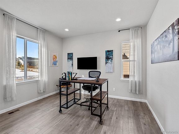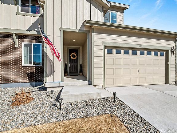 Welcome Home to 6582 Dukes Trail in Castle Pines! This home was built in 2020 and has 3 bedrooms and 3 bathrooms with a total of 2,810 square feet. Move in ready and meticulous! The main floor is open and airy and includes an office with French doors off the foyer as you enter the home. Great home for entertaining with a large great room, gas fireplace and open kitchen/dining. Beautiful kitchen with white cabinets and sleek black granite countertops and a large island. All appliances stay with the home including the gas stove. Mud room and large pantry off the garage as you enter into the kitchen. Going upstairs you will find 3 bedrooms including the Primary Bedroom and Bathroom with dual sinks, a large shower, and walk in closet. Two additional bedrooms and a full bathroom with dual sinks and a shower/bathtub combo. Laundry room is conveniently located on the second floor. The backyard is HUGE! Tons of room for running and playing and enjoying the beautiful Colorado evenings. Large patio off the kitchen/dining area. The yard is fully sodded with an irrigation system in front and back. There is also a fire pit area! Unfinished basement. 2 car garage. Great neighborhood with walking trails and parks and close to shopping and restaurants.