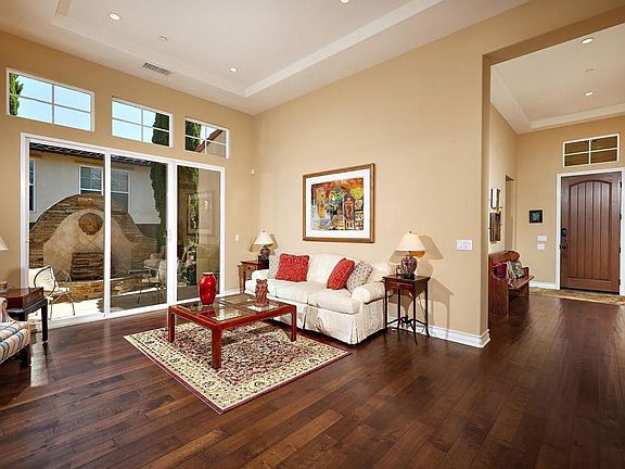 LOOK NO FURTHER! Rare single story on a HUGE pool sized lot in the desirable neighborhood of Viridian in La Costa Greens! This 3 BD/2.5 BA home features lots of privacy, dramatic soaring ceilings, and upgraded wood flooring. Large living room & dining area with sliders to the tranquil courtyard with fountain feature. Spacious family room with surround sound & cozy gas fireplace. Kitchen features rich wood cabinets, granite countertops, island, stainless steel appliances, breakfast area, and built-in desk. Lavish master suite with French doors to backyard and spa-like bath with dual shower heads, built-in bench, dual vanities, heated towel rack, and walk-in closet. Huge private backyard with large grass area, patio, numerous fruit trees, and custom stacked stone backyard fireplace with seating and trellis! PAID SOLAR! Vivent monitored security system with phone controlled front door camera, lock, and garage door opener. 3-car garage with painted epoxy floors, lots of built-in cabinet storage, and two work benches. Wonderful Alga Norte Park is less than a mile away! Residents of La Costa Greens have the exclusive use of "The Presidio" and its Resort-like amenities, including a community pool, tennis courts, workout & recreation room. Convenient to Legoland, shopping, entertainment, and easy drive to North County's best beaches! CARLSBAD SCHOOL DISTRICT! LIVE THE RESORT LIKE LIFESTYLE OF LA COSTA GREENS!
