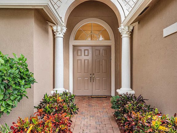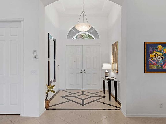 Looking for a home with a beautiful water view? This popular Maiano model in Villaggio may be just what you're looking for. The main living area has ceramic tile on the diagonal with tile inlays in the Foyer. The Kitchen has upgraded granite countertops and backsplash, double oven, wood cabinets, upgraded Sink, Range and microwave and pullouts in the pantry. There are extra high hats throughout and there are french doors leading into the Office/Den. There are built in closet systems in the master bedroom and the master bath has a seamless glass shower door, wood cabinets and a custom glass block window. The guest bedroom has a walk in closet and the guest bath has tile to the ceiling on the diagonal. The dual zone air conditioners are 3 years old and 4 years old respectively.