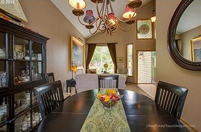 Wilsonville traditional with 5 bedrooms and 3 full baths. Cedar siding, newer roof and 3 car garage. Awesome private backyard with covered patio. 9 ft ceilings on the main level with vaulted entry, LR and dining. Vaulted Master BR and walk in closet.
