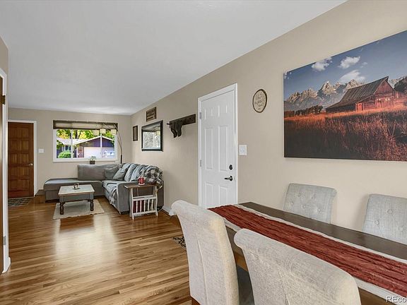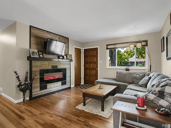 This West Arvada 4 bedroom 2 bathroom all brick home has been updated and upgraded with custom finishes. You will love the clean look of the fresh hardwood floors on the entire main level. The curb appeal of this well cared for home will get your attention right up front, the brick, the mature trees, the lush lawn, the attached oversized garage and the sharp painted trim. Enter into the living room/dining/kitchen combo great room with the custom fireplace and media center. The kitchen was completely redone with new painted cabinets, granite counters and shiny stainless steel appliances all with a sharp painted bead board backsplash. Head down the hallway to the 3 bedrooms & bathroom area of the main floor. The full bath has been updated with custom finishes, tile floor and ample linen closet. The main bedroom is spacious with beautiful hardwood floors, a large walk-in closet with custom built-ins and sliding barndoor. Just off the kitchen is the entrance to the fully finished basement. There is a large open rec room with a kitchenette area if desired, a pool table with all included accessories, and plenty of open room for gatherings. Also find a small bedroom and a 3/4 bath perfect for teens, guests or craft room, home office, etc... There is a large laundry room with room for ironing, sewing, open storage plus a large finished storage room with many possible options for your choice of use. The attached 2 car garage is splendid, it is oversized in depth and width, your big truck should fit, there is room to have a workspace, there is an access door to the backyard, it is insulated and drywalled and so well lit. Wait until you see the lush private back yard, the massive covered patio with a tiki bar, the perimeter gardens and all of the open space! Truly a private oasis! Nice RV PARKING with a 30amp electric plug next to the driveway. This location is in a coveted area near the foothills w/ easy access to the mountains, Denver, Golden, Boulder & other nearby suburbs!