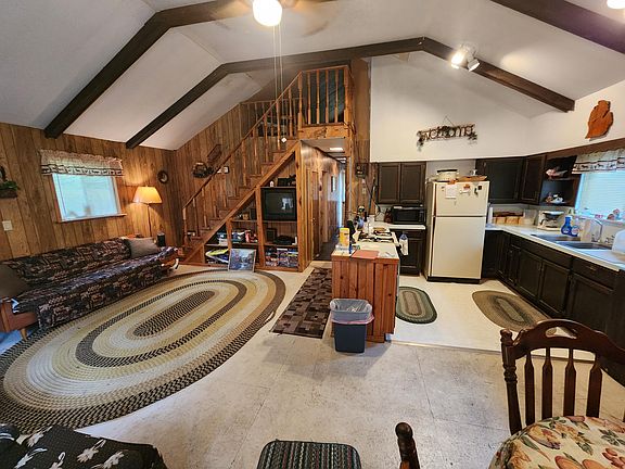 Your home by the lake is waiting for you! This 2 bed, 1 bath home features an open living area, cozy wood stove, and a loft for extra guests. Expansive yard for family fun and bonfires. Enjoy shared-private access to Little Bear Lake and just a mile from State Land. Your perfect weekend getaway awaits!